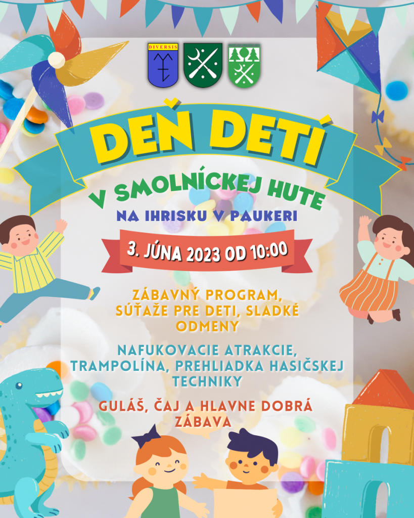 Pozývame VÁS na oslavu sviatku všetkých detí - MDD. Konať sa bude 3.6.2023 od 10:00h. na ihrisku v PAUKERI.