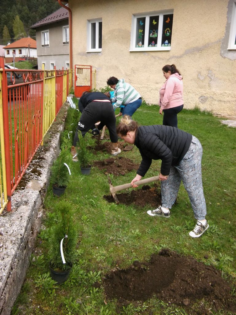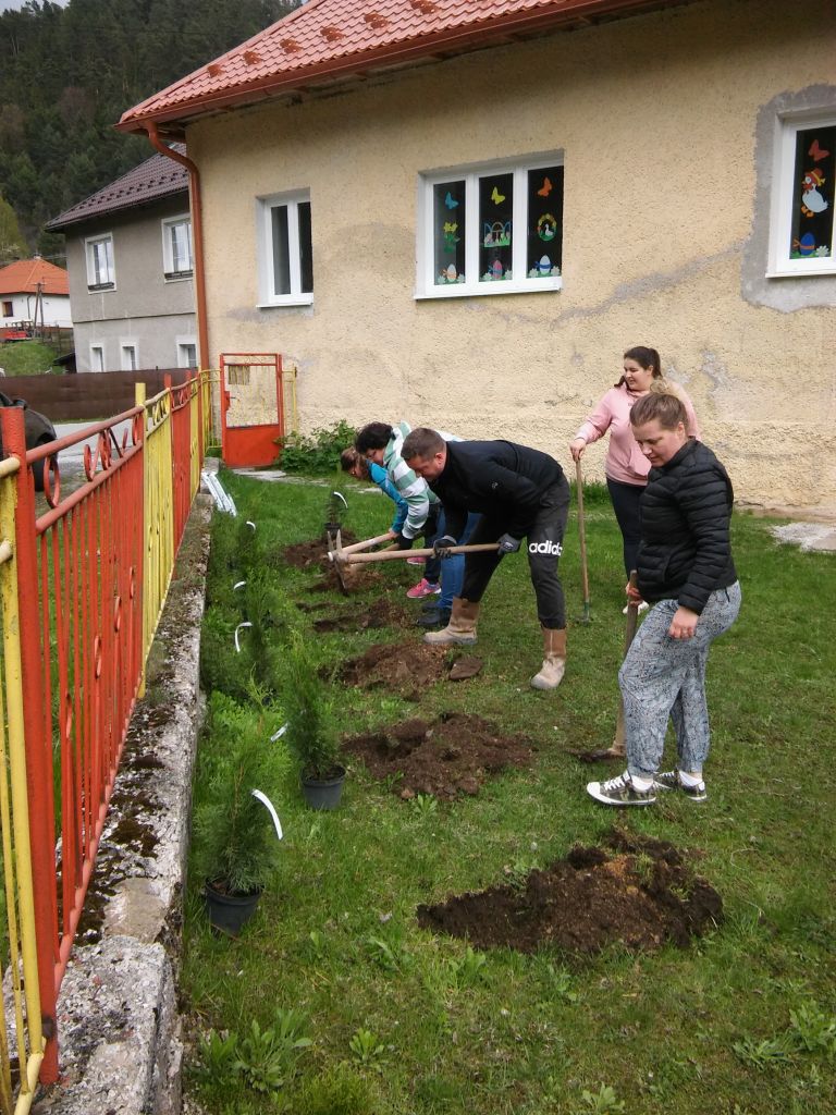Mesiac apríl už tradične patrí lesom. Preto sme sa aj my v spolupráci so ZRŠ rozhodli, že si skrášlime areál našej vynovenej materskej školy výsadbou stromčekov. Rodičia a p. učiteľky nezaháľali a pustili sa do práce. Vysadili 30 stromčekov okolo plota. Asistovali nám aj deti, ktoré mali veľkú radosť zo spoločnej práce so svojimi rodičmi a priložili taktiež ruku k dielu - zbierali kamienky, hrabali trávu a sľúbili, že sa budú o stromčeky starať. Slová vďaky patria všetkým, ktorí sa zúčastnili brigády s vedomím, že stromčeky budú slúžiť nielen na skrášlenie okolia materskej školy, ale aj na zachytenie prachu a hluku.